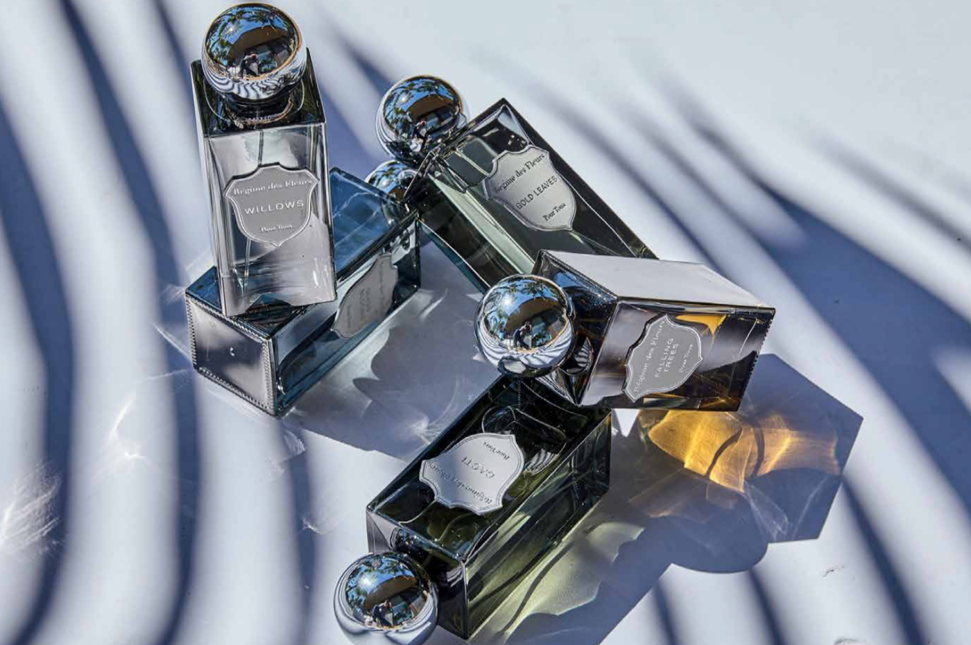 Pour Tous, which means „for everyone“, is an exquisite line of different, unisex eaux de parfums. The perfumers of Régimes des Fleurs were inspired by the spectacle of the botanical kingdom. The collection of five unique fragrance essences – Cacti, Falling Trees, Gold Leaves, Willows and Glass Blooms – creates an extraordinary combination of lightness, extravagance, complexity and restraint.